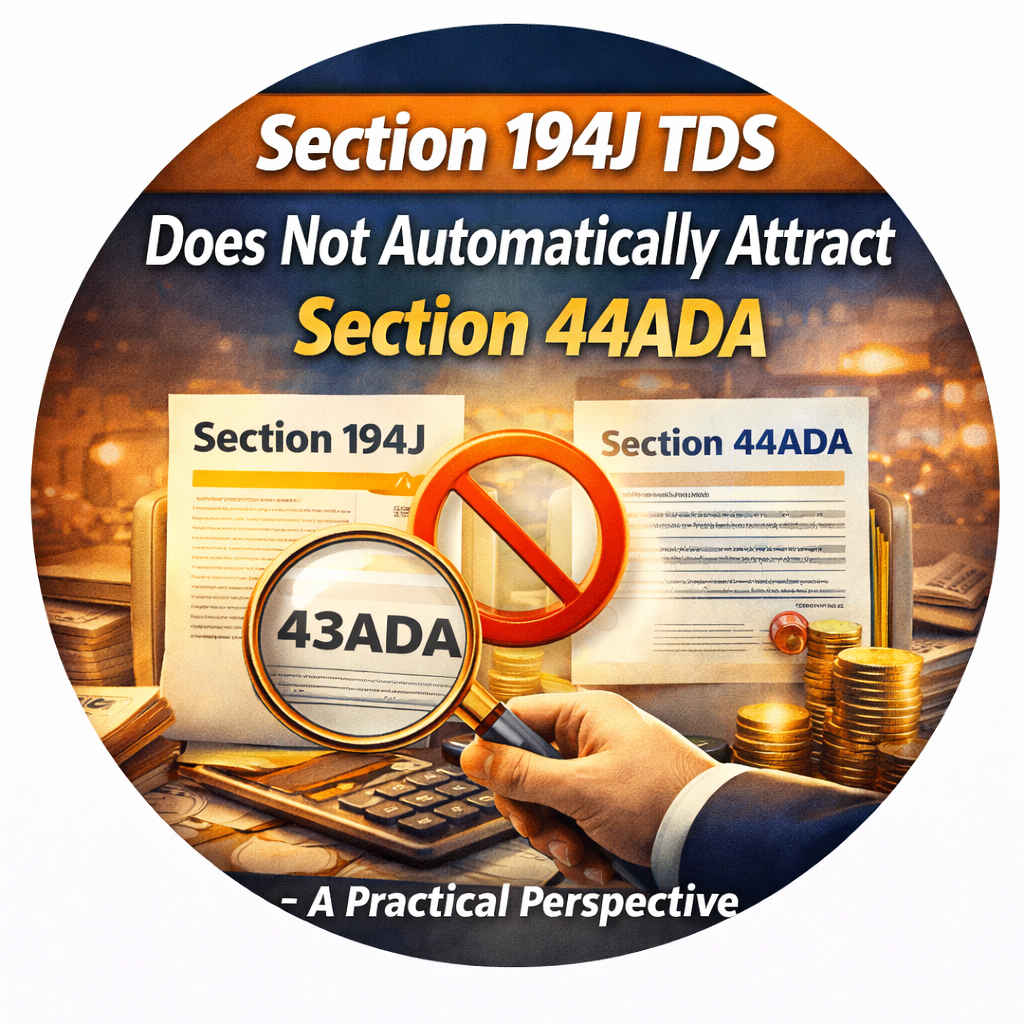 Section 194J TDS Does Not Automatically Attract Section 44ADA – A Practical Perspective In recent assessment proceedings, one issue that is increasingly coming up is the automatic assumption that in ........ View More